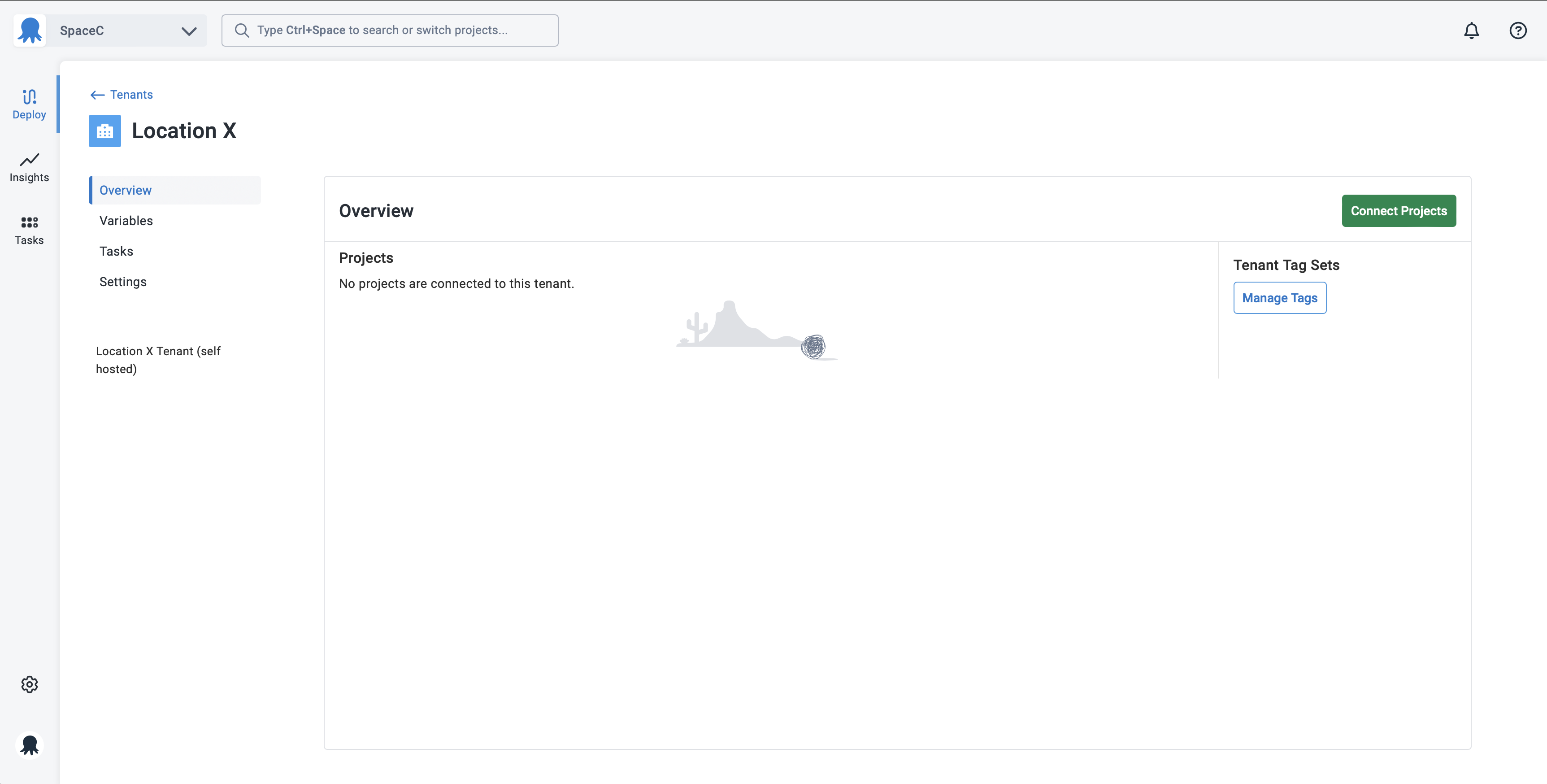 By connecting tenants to projects, you can control which projects will be deployed into which environments for each tenant.